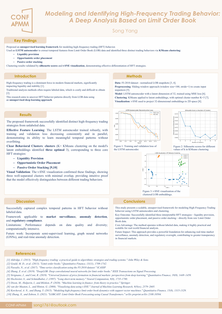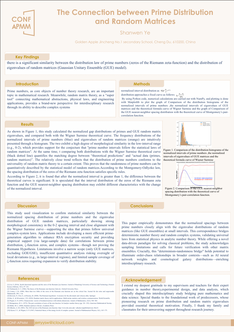 During the online session of CONF-APMM 2025, there will be a poster session which allow for a larger number of authors to share their research. The poster session will provide an opportunity for researchers to present their work in a visual and interactive way, allowing for more engagement and discussion with other attendees. Authors of qualified papers will be invited to present their works with digital posters. All posters can be seen on CONF-APMM 2025 official website. We believe that this online poster session will still be a great platform for participants to share, discuss, and cooperate. Hope you may enjoy the CONF-APMM 2025 online poster session!
